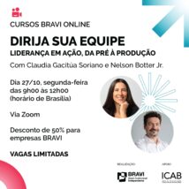 • Ainda dá tempo para se inscrever no workshop “Dirija sua Equipe – Liderança em Ação, da Pré a Produção”. Associado BRAVI tem 50% de desconto!